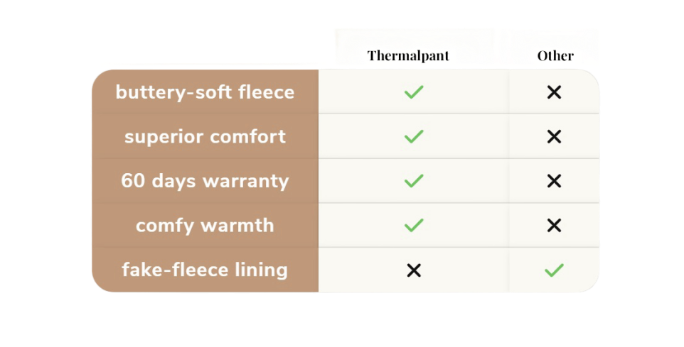 You Don't have to freeze just to look good. At The Thermalpant, we believe you should stay snug and stylish even when the temperature drops. Our fleece leggings ensure you can brave the cold without compromising on your unique style!